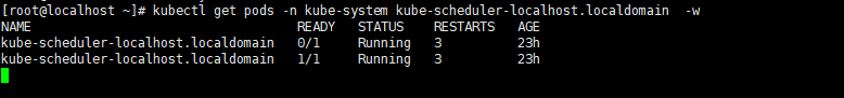 kubectl get pods -n kube-system kube-scheduler-localhost.localdomain -w