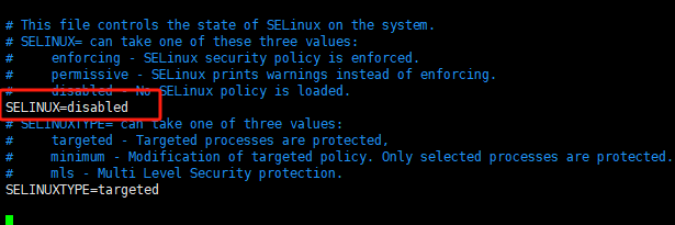 将SELINUX=改为disabled