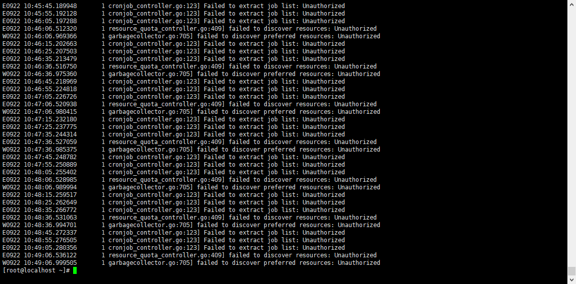 kube-controller-manager等组件频繁报 Unauthorized 错误,说明它们没有使用新的证书,或者没有重启导致缓存了旧证书。