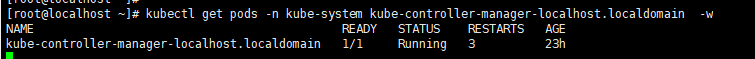 kubectl get pods -n kube-system kube-controller-manager-localhost.localdomain -w