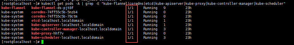 kubectl get pods -A | grep -E "kube-flannel|coredns|etcd|kube-apiserver|kube-proxy|kube-controller-manager|kube-scheduler"