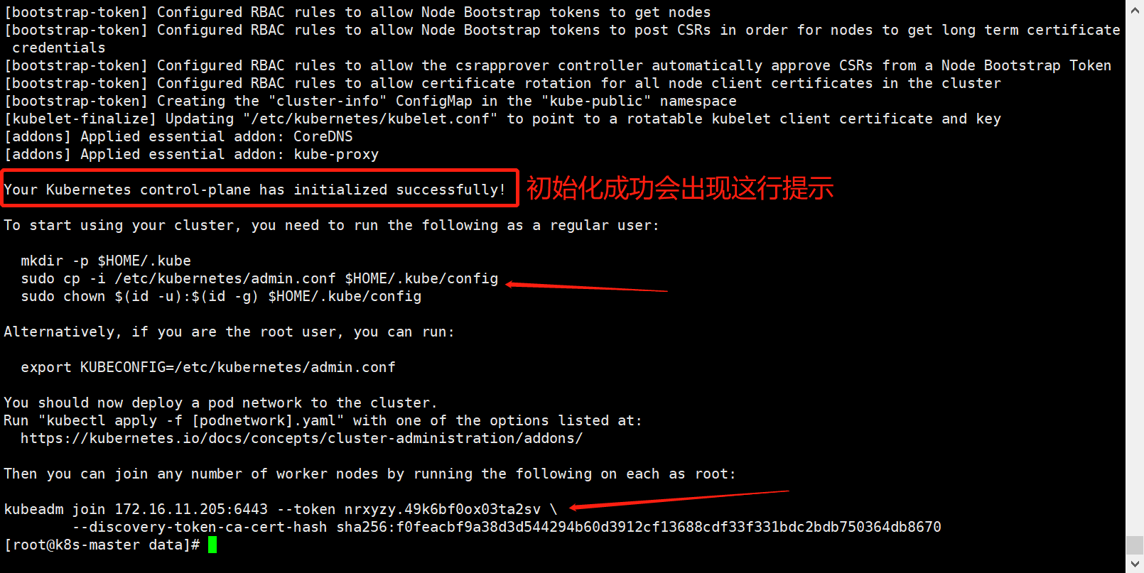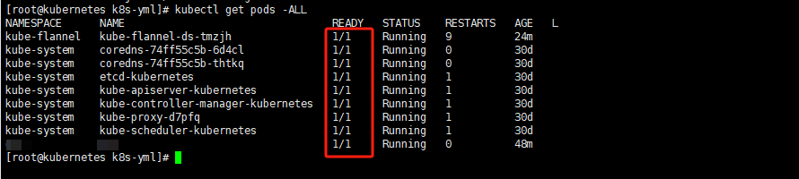 # pods里的k8s组件需都启动:kube-flannel、coredns、etcd、kube-apiserver、kube-controller-manager、kube-proxy、kube-scheduler