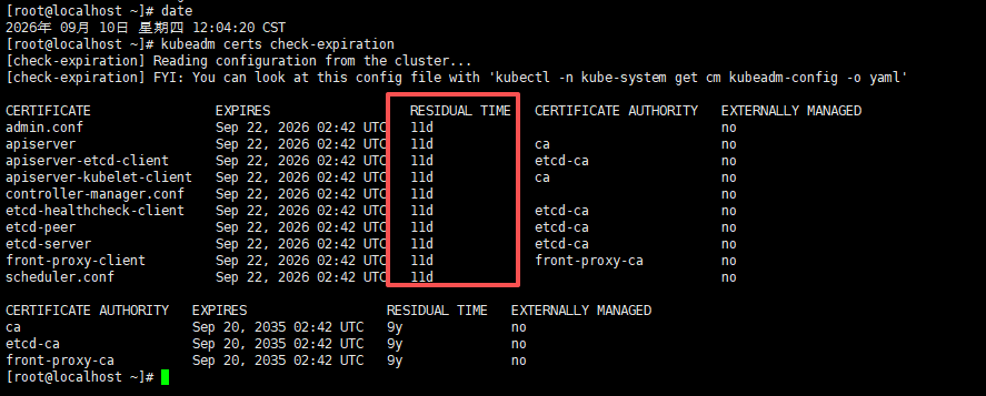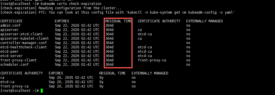 kubeadm certs check-expiration如下正常显示时间就对了;