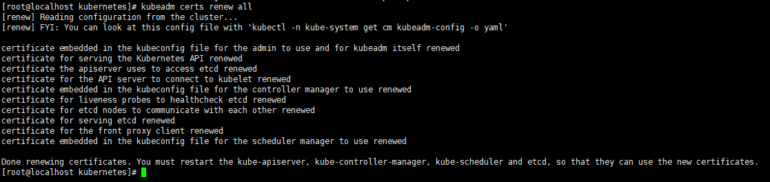 kubeadm certs renew all输出如下就是正确的;
