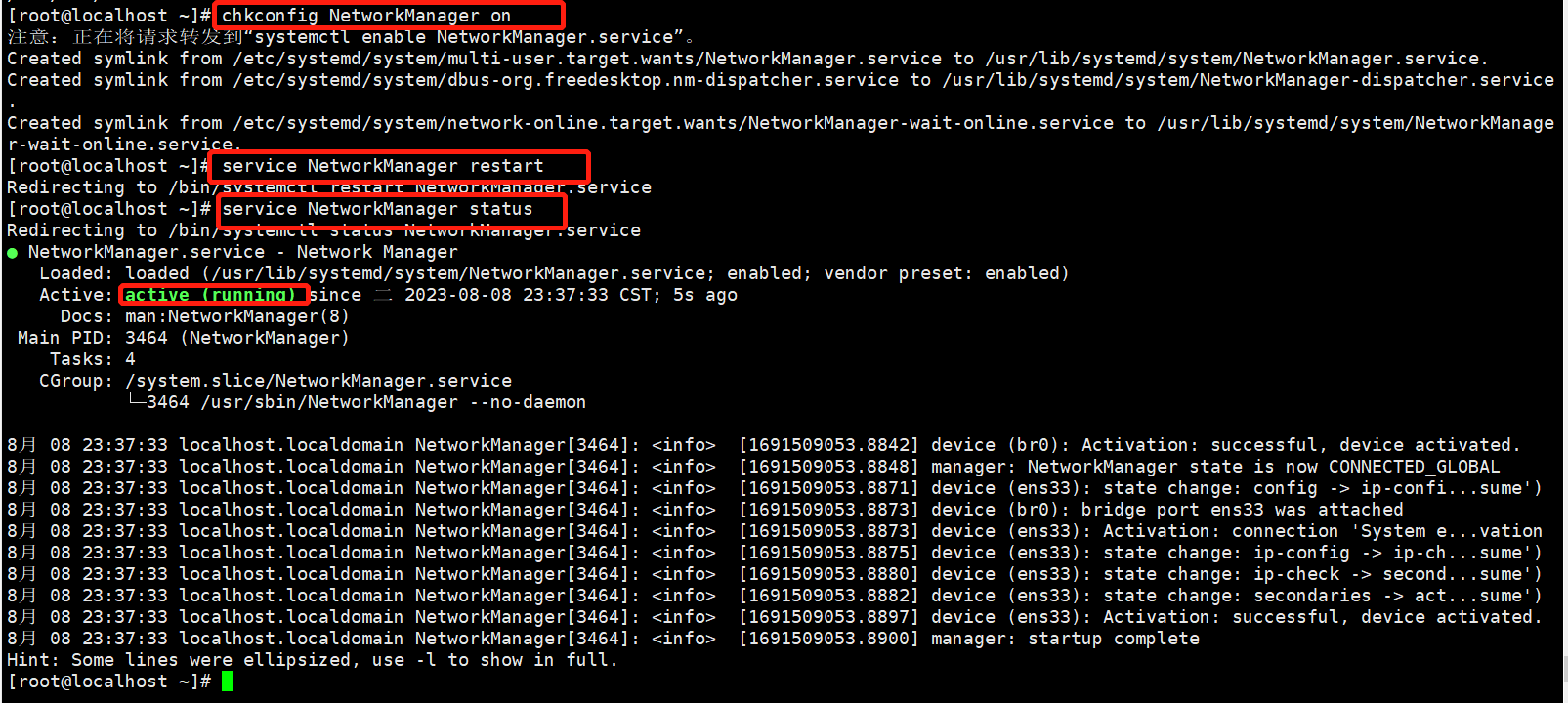 #启动NetworkManager服务