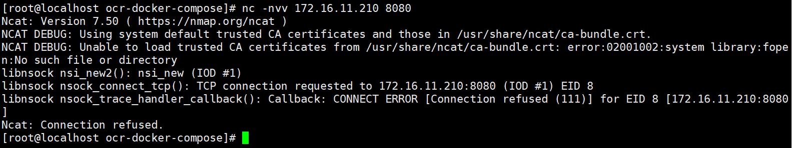 nc -v -z -w2 172.16.11.210 8088这是不成功的输出