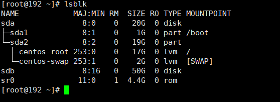 也可以使用lsblk查看现有的磁盘,看着比较简便明了。