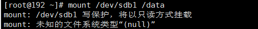 mkdir /data然后对磁盘分区进行挂载;直接挂载肯定是不行的,会提示报错的;