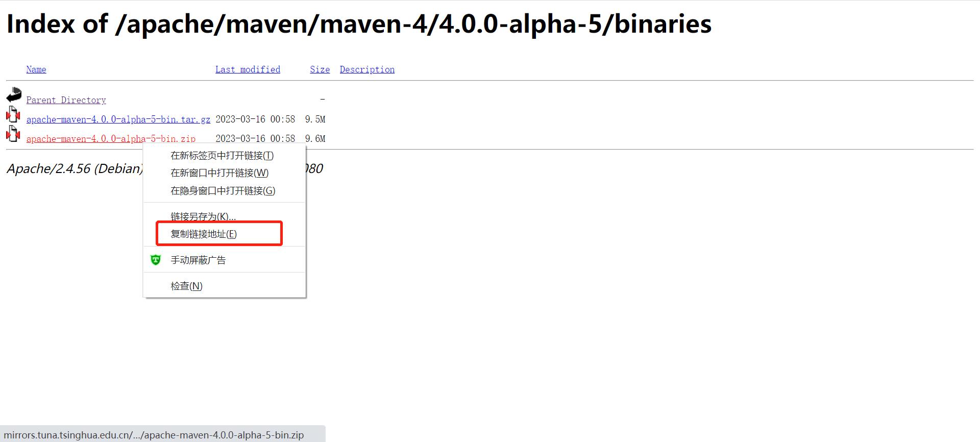 这是下载地址:https://mirrors.tuna.tsinghua.edu.cn/apache/maven/maven-4/4.0.0-alpha-5/binaries/