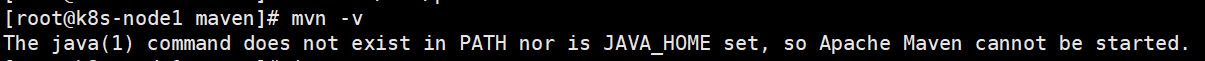 该报错是找不多jdk,配置一个jdk即可;可参考:Linux中安装jdk1.8和配置环境变量 来配置jdk,配置完成之后再次执行以下mvn -v校验即可。