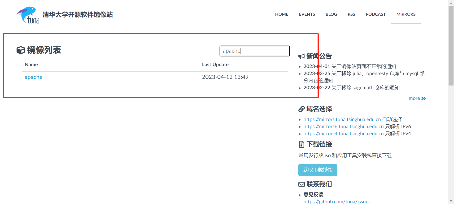 - 1、登录网址查看下载源:清华大学开源软件镜像站