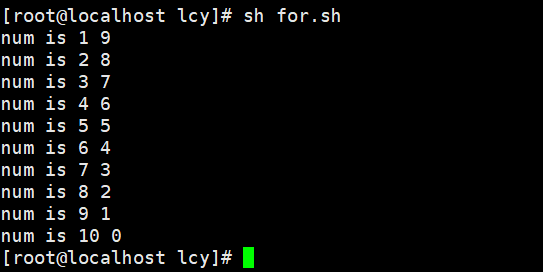 for (( a=1,b=9;a<=10;a++,b-- ));do