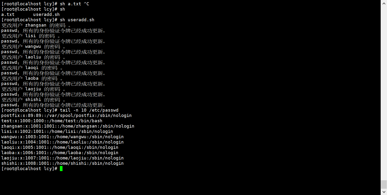 如果需要删除这些用户,可在脚本中把useradd改为userdel -r即可;