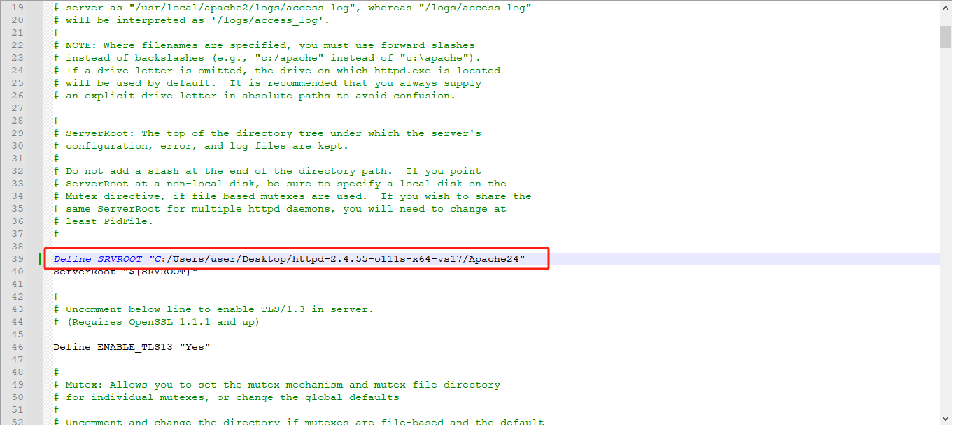 找到以 Define SRVROOT 开头的 配置Apache安装路径;