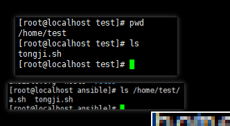 [root@localhost ansible]# ansible web_group -m shell -a "ls /home/test/"