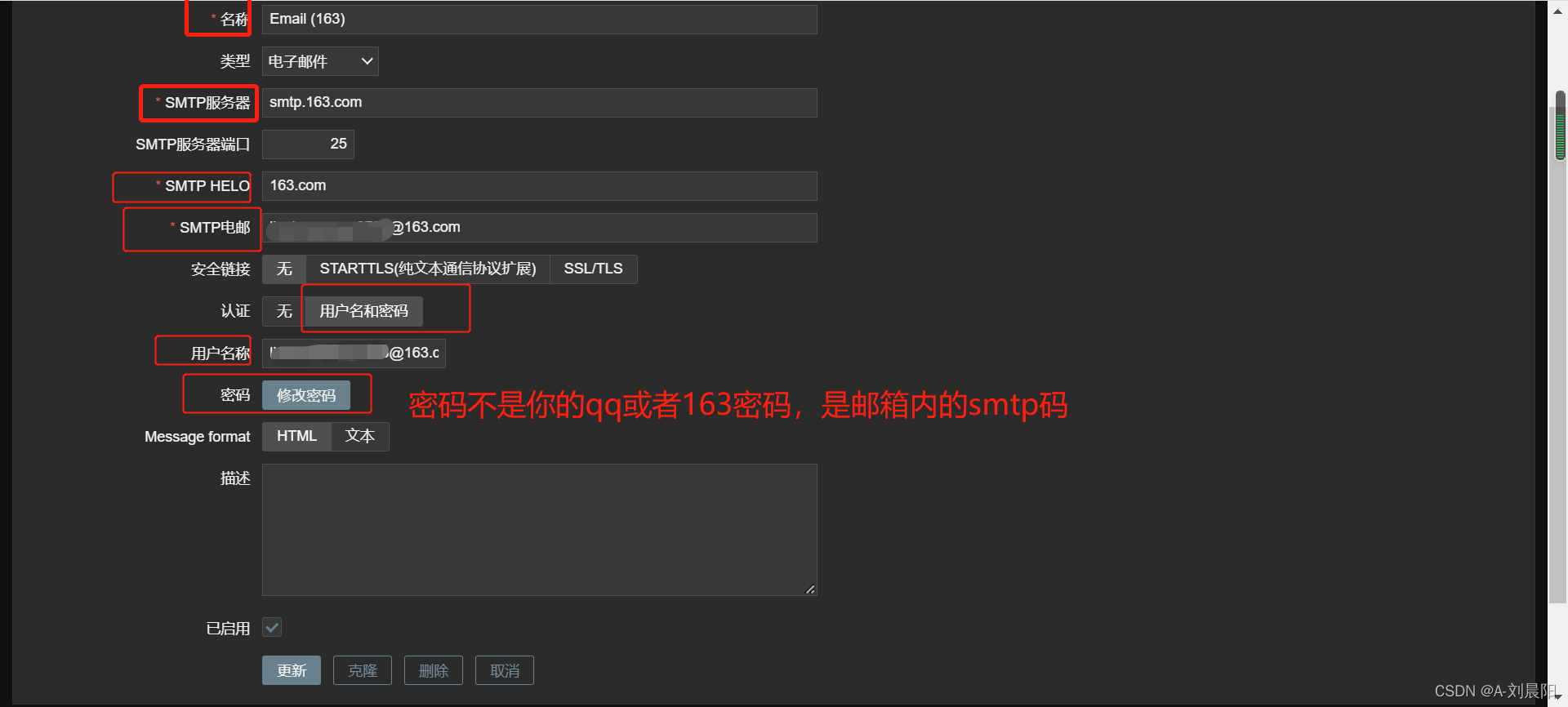 注意:密码不是你的163或者qq密码,是邮箱内的smtp码,这里我们来用qq邮箱来举例